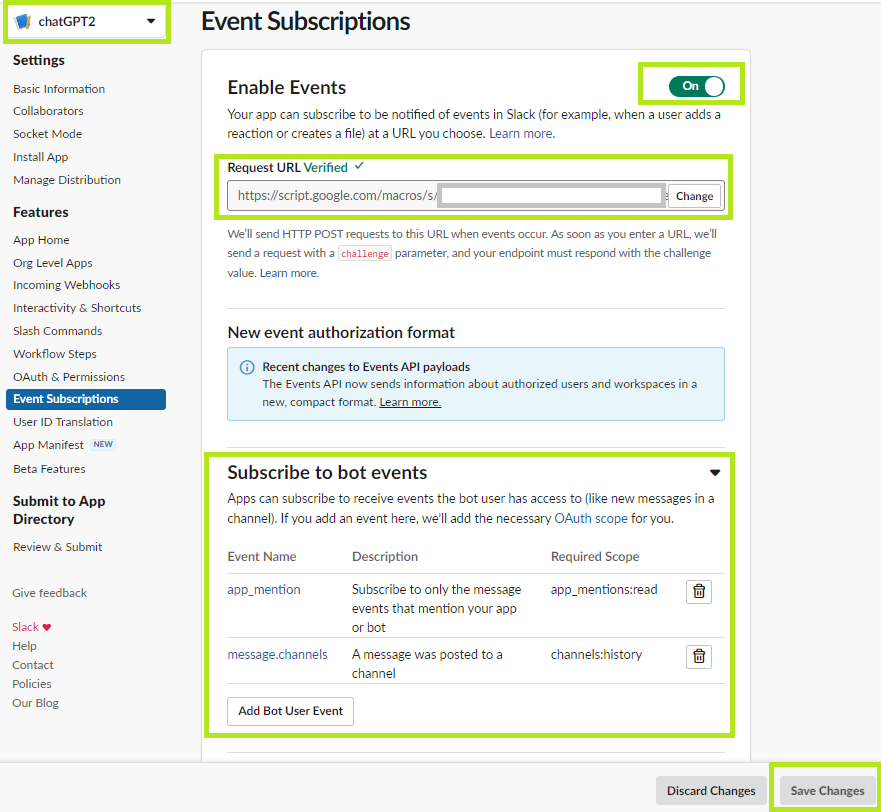 GASへSlackBotアプリとchatGPTの連携設定を行う