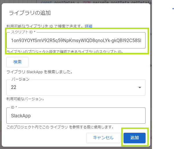 SlackからGASへの認証が通るかは後述する順2で確認するため、とりあえず順1の通り作成してみてください