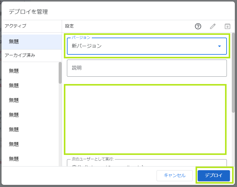 - デプロイ → デプロイを管理 → 鉛筆マーク(編集)